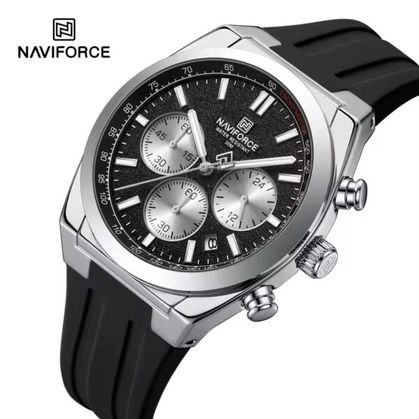 Naviforce 8078 Watch For Men- Silver Black