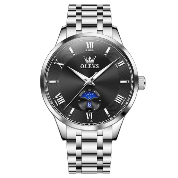 OLEVS 3638 Mens Quartz Moonphase Watch-Silver and Black