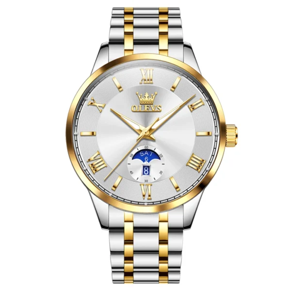 OLEVS 6635 Men’s Quartz Watch-Golden Silver and White