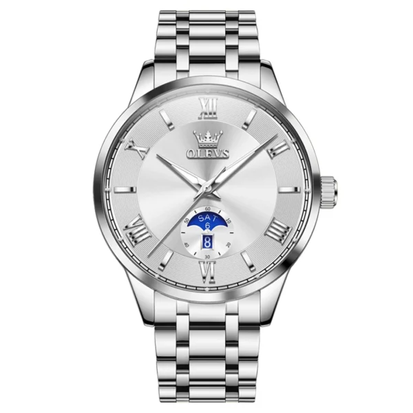 OLEVS 3638 Mens Quartz Moonphase Watch-Full Silver