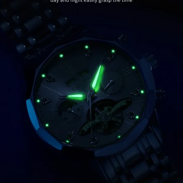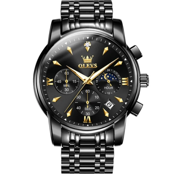 OLEVS 3653 Moon Phase Chronograph Stainless Steel Men’s Watch-Black