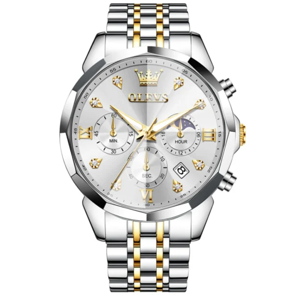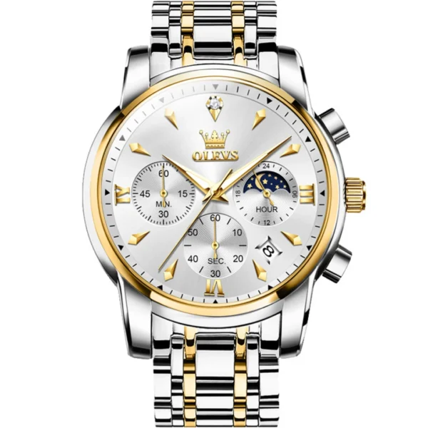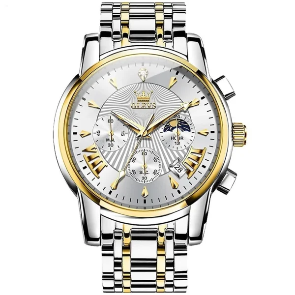 OLEVS 2892 Chronograph Luxury Mens Watch-Golden Silver and White