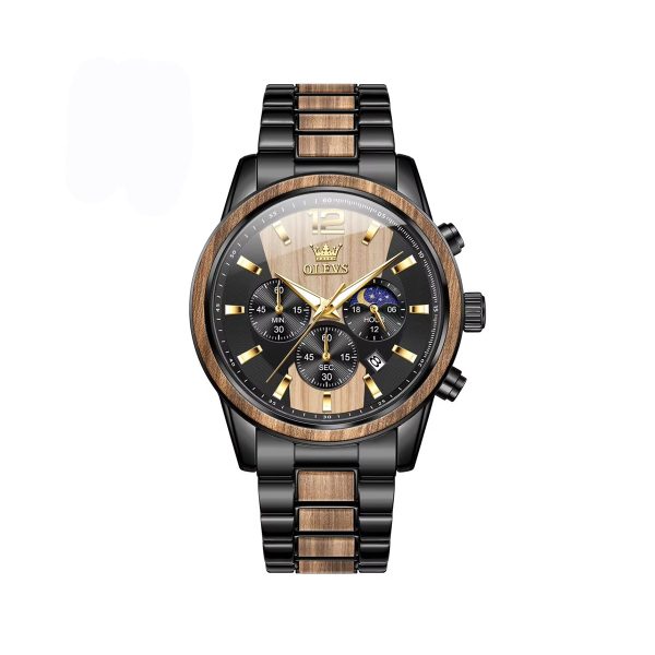 OLEVS 3645 Wooden Chronograph Stainless Steel Men’s Watch-Black
