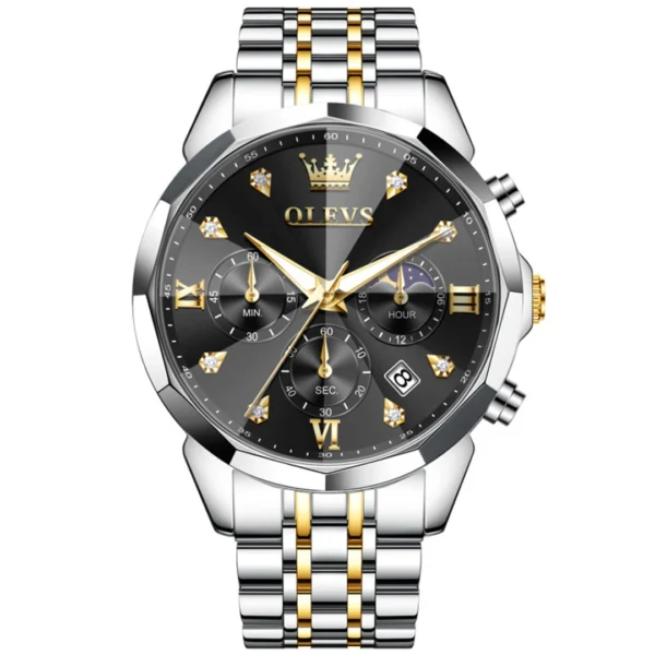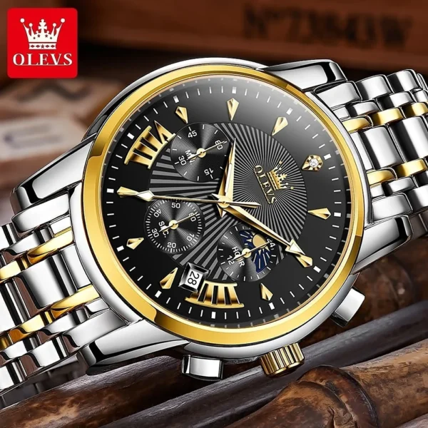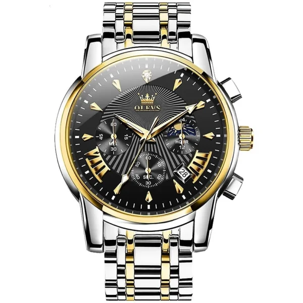 OLEVS 2892 Chronograph Luxury Mens Watch-Golden Silver and Black