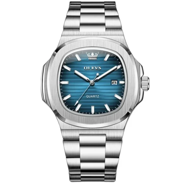 OLEVS 3696 Luxury Mens Quartz Watch-Silver and Blue