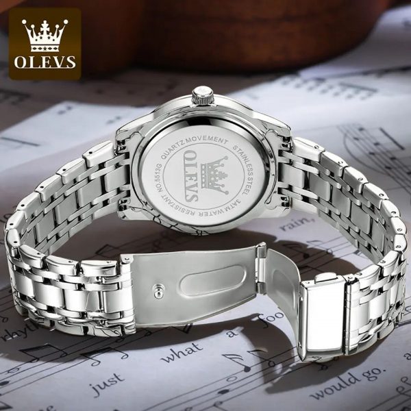 OLEVS 3696 Luxury Mens Quartz Watch-Silver and White