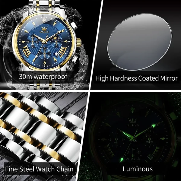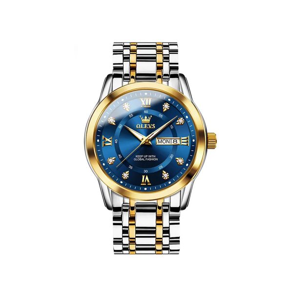 Olevs 5609 Watch For Men-Sliver Gold Blue