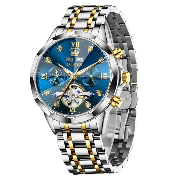 OLEVS 7069 Mechanical Business Class Men’s Watch-Gold Blue