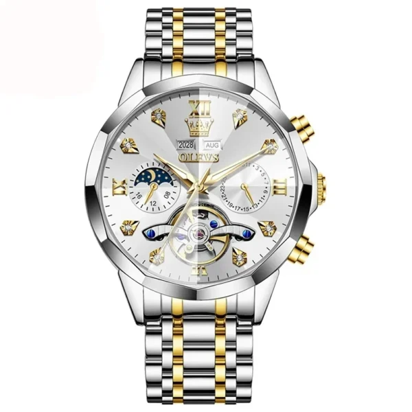 OLEVS 7069 Mechanical Business Class Men’s Watch-Gold White