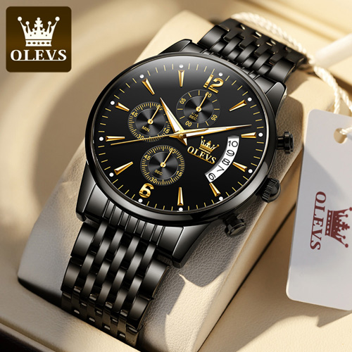 Olevs 2867 Stainless Steel Chronograph Wrist Watch For Men – Black