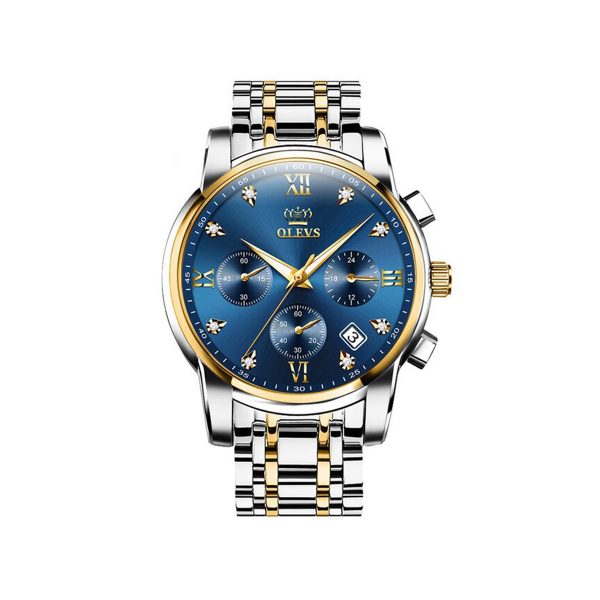 OLEVS 2892 Chronograph Luxury Mens Watch-Golden Silver and Blue