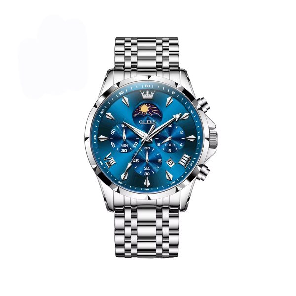OLEVS 3653 Moon Phase Chronograph Stainless Steel Men’s Watch-Silver Blue