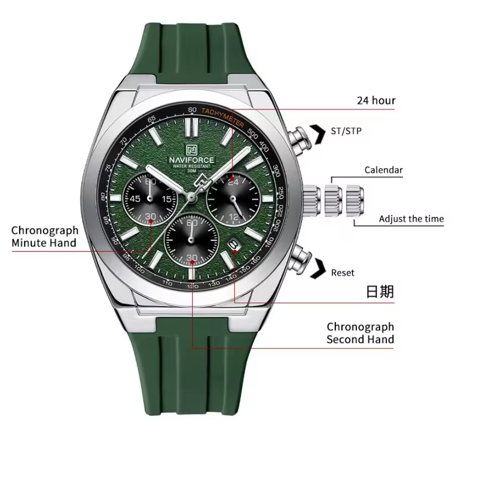 Movement: quartz chronograph movement.