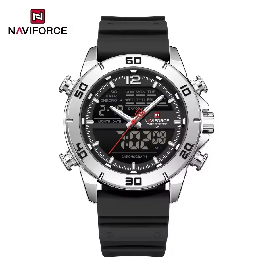 Naviforce 9253 Silicon Belt Watch For Man – Silver Black
