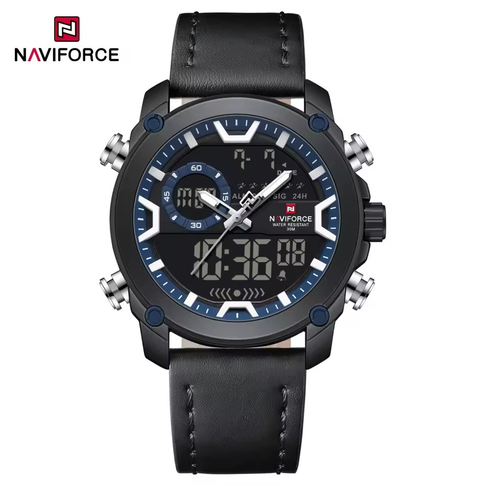 Naviforce 9233 Leather Wrist Watch For Men-Coffee