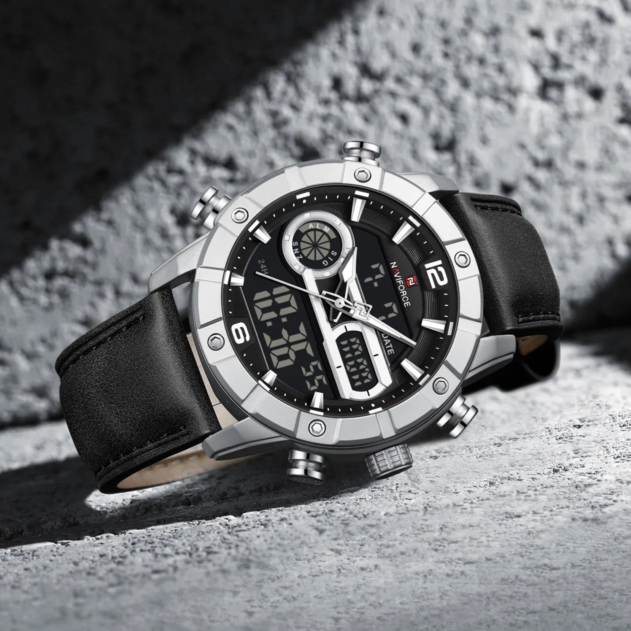Naviforce 9233 Leather Wrist Watch For Men-Coffee