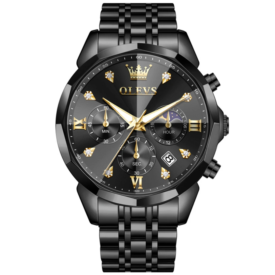 OLEVS 3670 Multifunction Dial Mens Quartz Watch-Full Black