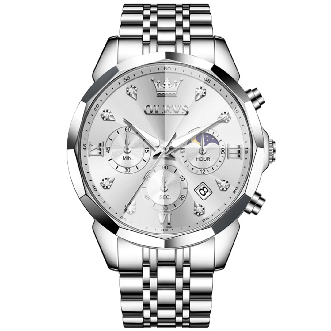 OLEVS 3670 Multifunction Dial Mens Quartz Watch-Full White