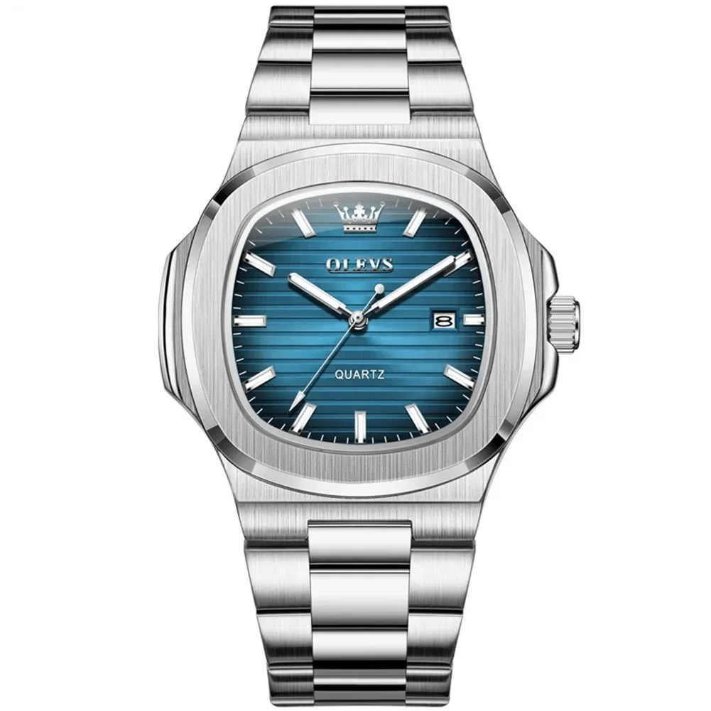 OLEVS 3696 Luxury Mens Quartz Watch-Silver and Blue