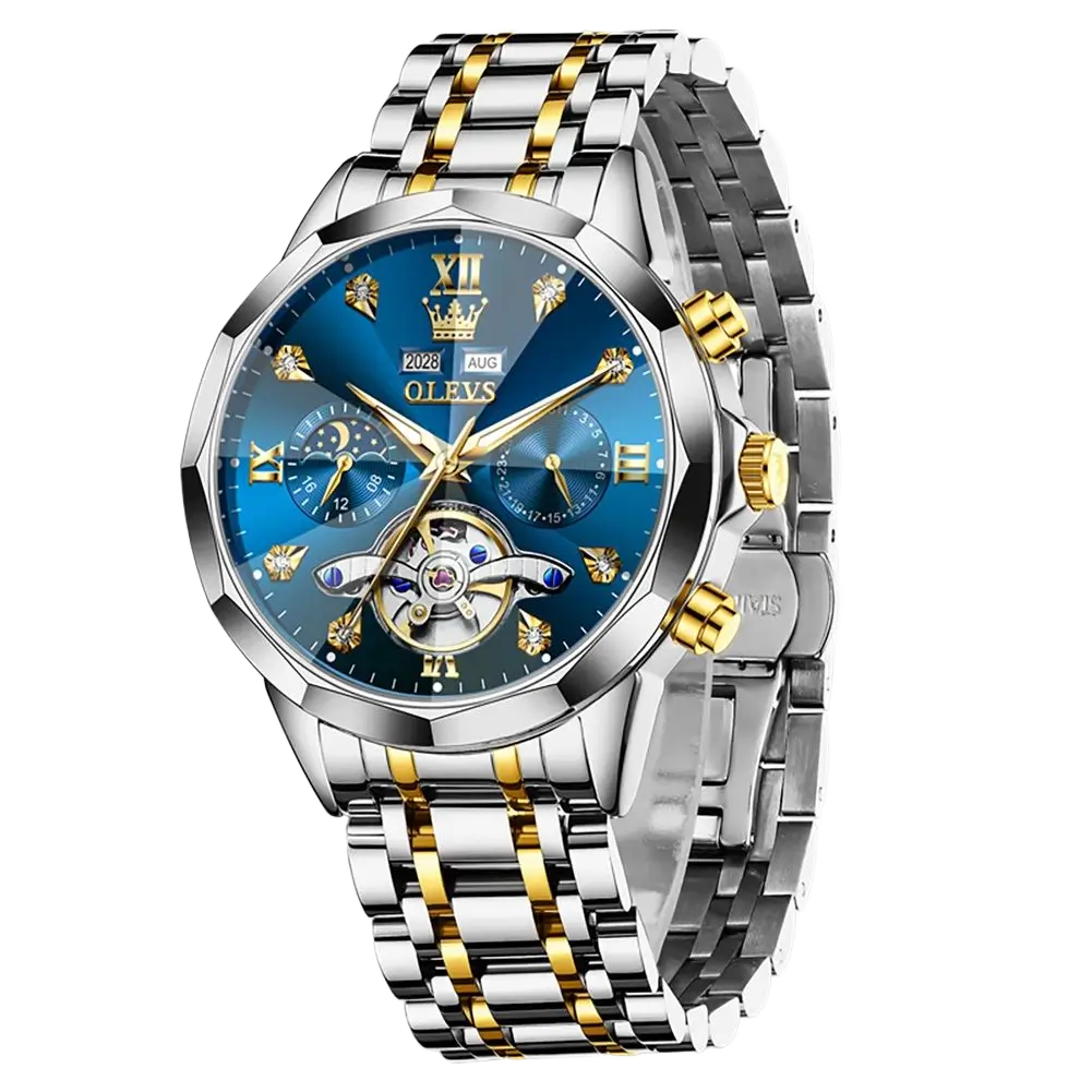 OLEVS 6621 Mens Automatic Chronograph Watch-Golden Silver and Black