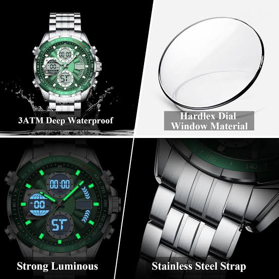 Features: Alarm, Stopwatch, Dual Time, LED Backlight, Day/Date, Luminous Hands