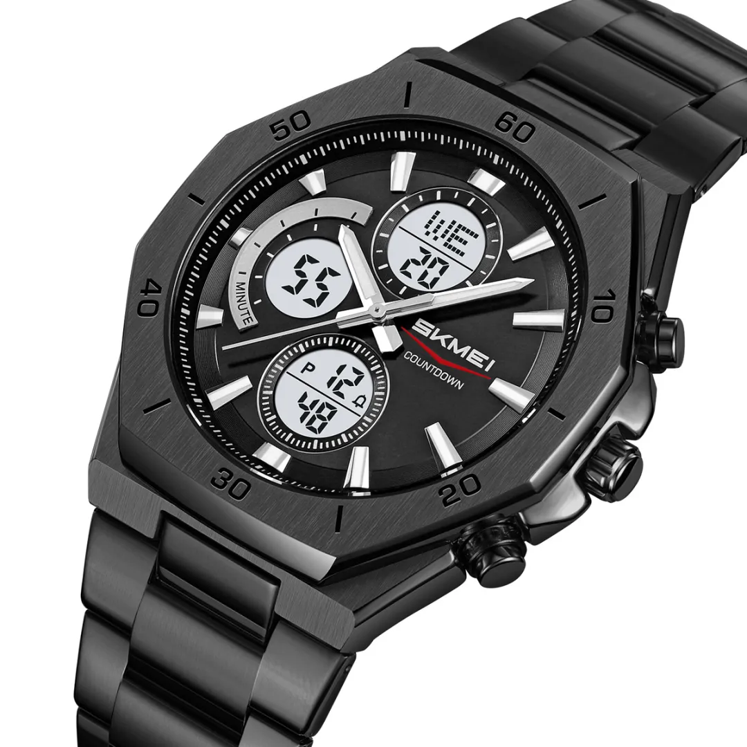 SKMEI 2452 Luxury Active Chronograph Luminous Stainless Steel Men’s Quartz Watch- Silver Black